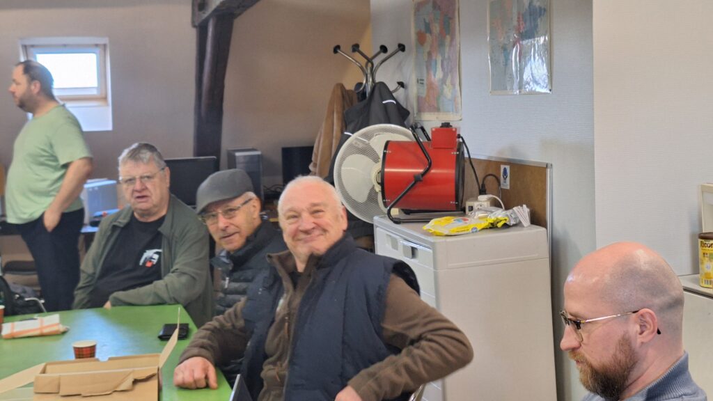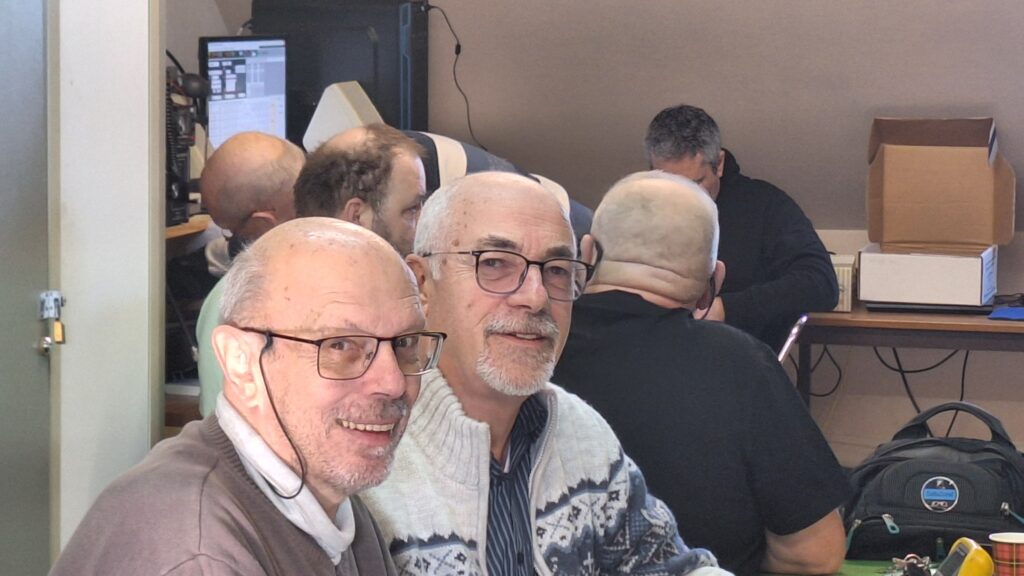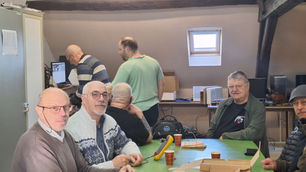 Not’ Président et F5HKV teste un petit appareil que nous a rapporté notre nouveau copain de jeu, Christophe… Lequel regarde les opérations avec attention ! Le reste de l’équipe pose une profonde, et néanmoins sympathique Lire la suite