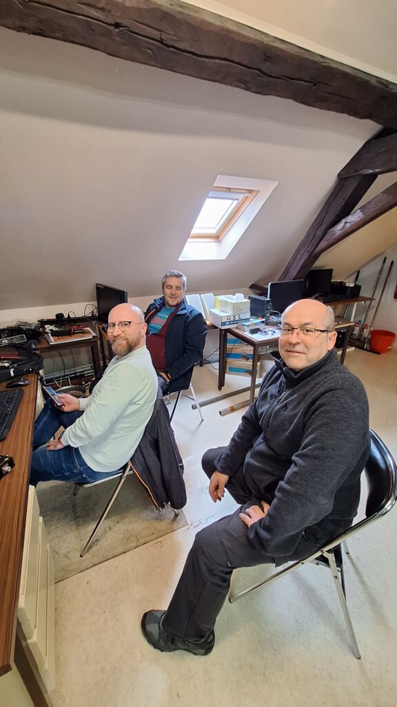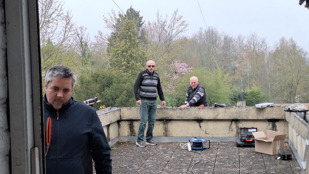 Ca y est c’est pour aujourd’hui ! On va enfin savoir si le radio club peut recevoir QO-100 ! Sur le papier ça passe tout juste, la parabole pointant sur le coté du toit de l’église ça passe ou ça casse !