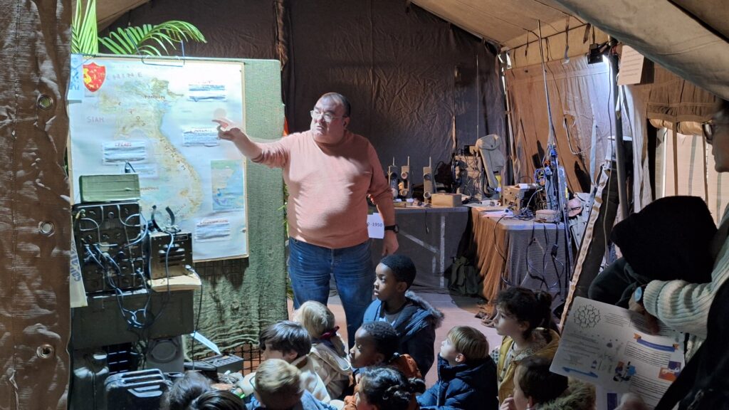 C’est avec passion que J. Luc partage tout ce qu’il sait sur le matériel exposé.